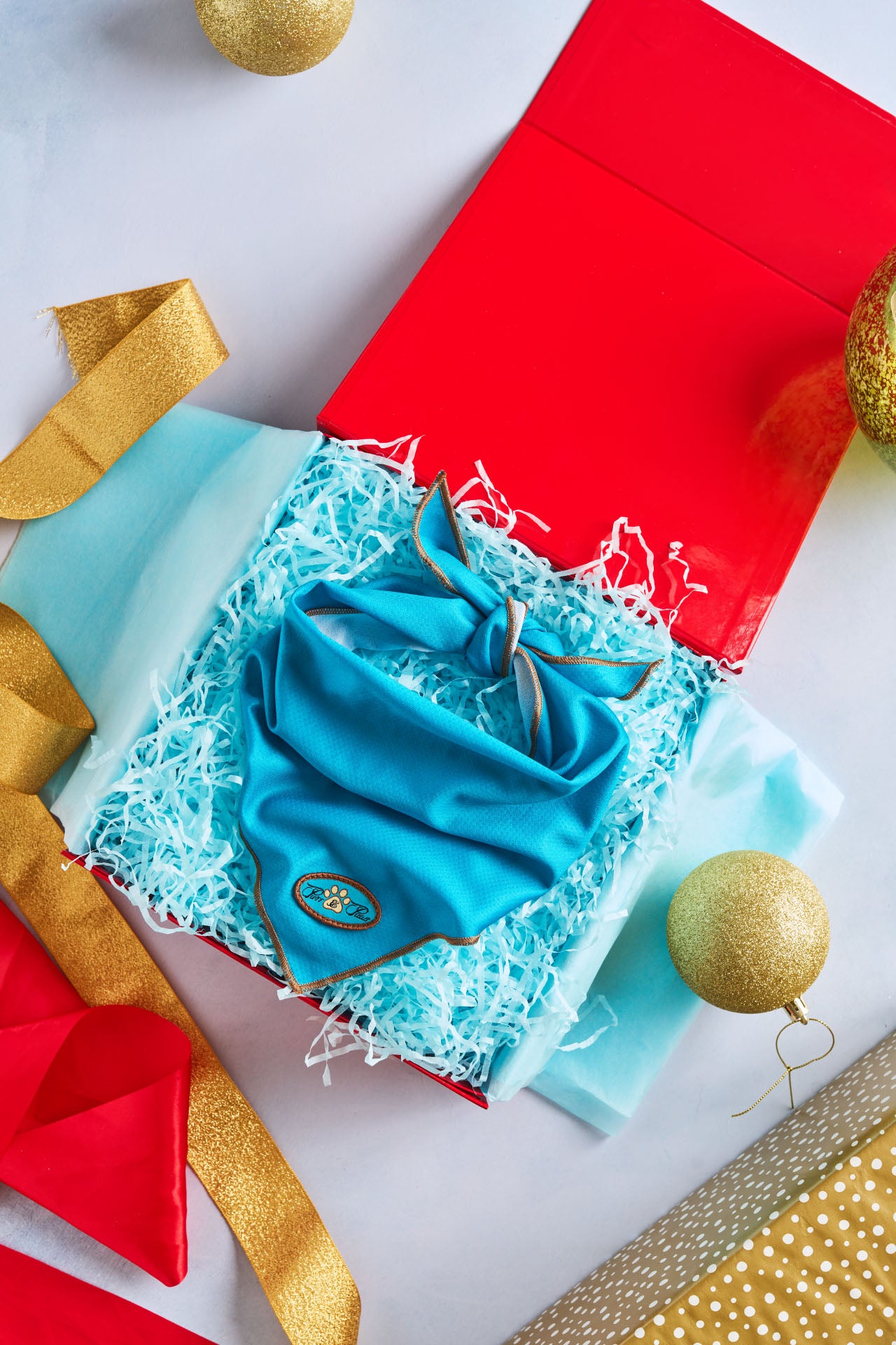 Our new vibrant, stylish Bandannas aren’t just ordinary accessories; they’re enchanting, engaging and made from 100% polyester, a lightweight, breathable fabric designed to keep your dog cool in hot weather by retaining water. The bandanna in Azure le Bronze (teal with bronze-edged piping) sports our embroidered motif. Purr & Paws bandannas are practical and fashionable, exuding flair and adventure to bring out the best in every dog who wears them. Our bandannas remind everyone that with a little bit of magic and a lot of heart, every Dog can be a hero.