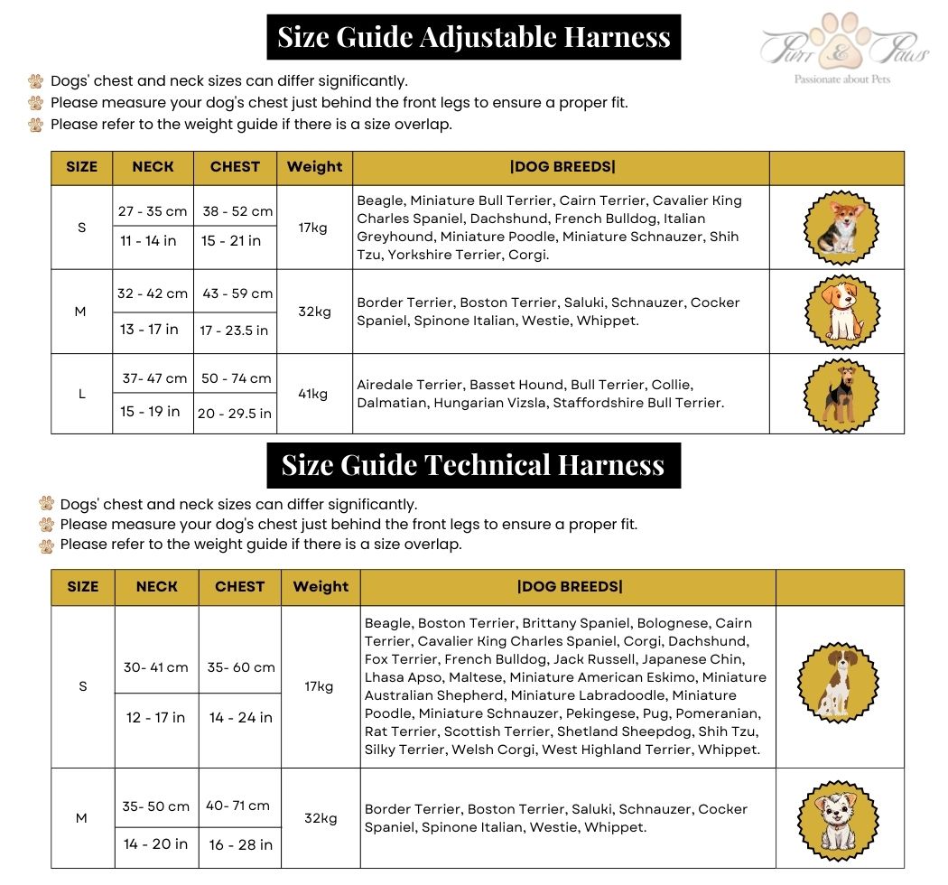 Please use a tape measure and ensure that your dog’s precise chest and neck growth measurements determine whether the harness will fit properly.