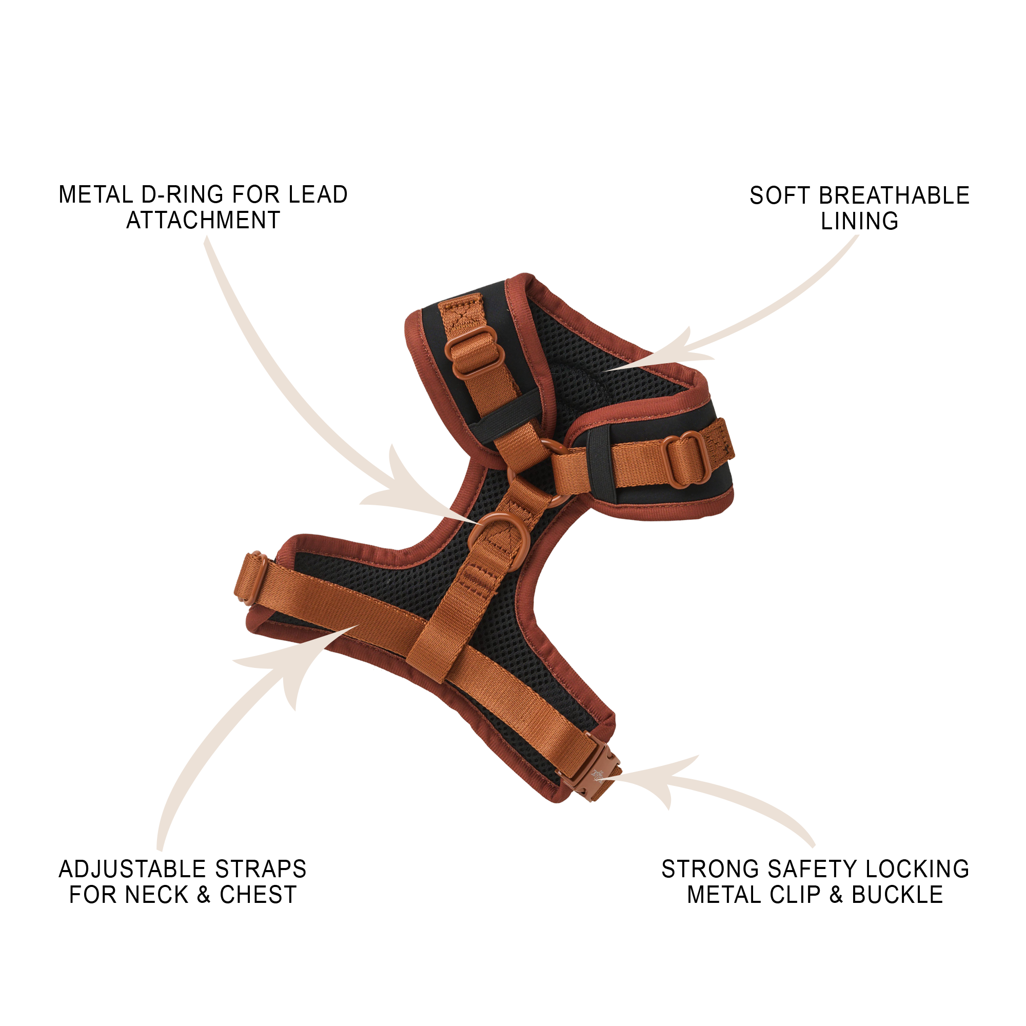 •       Fit & Adjustment: The harnesses feature fully adjustable straps around the chest and neck for a secure fit. They also feature quick-release buckles and a no-pull design to prevent strain on the dog’s neck.